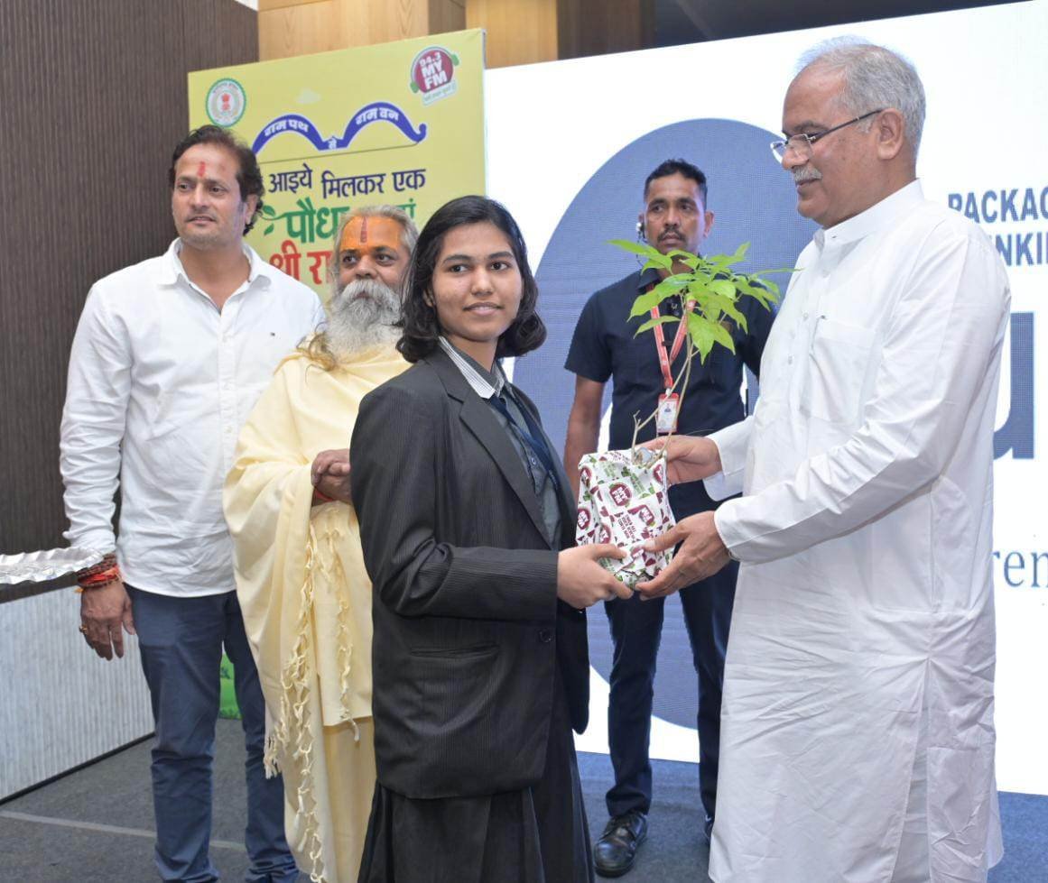 मुख्यमंत्री श्री भूपेश बघेल मॉय एफ एम 94.3 के आईये मिलकर एक पौधा लगाएं श्रीराम के नाम कार्यक्रम में शामिल हुए। उन्होंने राम वनगमन पथ के प्रारंभिक नौ स्थलों के मिट्टी से लगाए गए पौधों को स्कूल के बच्चों को वितरित किया। इन पौधों को कौशल्या माता परिसर चंदखुरी में रोपण किया जाएगा।