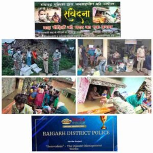 बाढ़ को लेकर आईजी बिलासपुर दीपांशु काबरा ने पुलिस को मदद करने का निर्देश दिया। पुलिस से बाढ़ प्रभावितों ने चर्चा में कच्चे मकानों को सुधार कराये जाने में मदद की गुहार किए। उन्हें प्रशासन की ओर से नुकसानी-आंकलन पश्चात उचित मुआवजा मिलने की जानकारी दिया गया तथा रायगढ़ पुलिस द्वारा भी यथासंभव मदद करने का आश्वासन दिया। पुलिस अधीक्षक द्वारा जनसहयोग से बाढ़ पीडितों की मदद के लिये जीवनापयोगी व पुर्नवास के सामानों को एकत्र करने “संवेदना” कैंपेन चलाया गया। लोगों को राहत देने वाले सर्वत्र प्रशंसित अभियान को मुख्यमंत्री के कार्यालय द्वारा सोशल मीडिया पर भी शेयर किया गया था। अभी रायगढ़ पुलिस के उस उल्लेखनीय “संवेदना” कैंपेन को नोएडा की प्रतिष्ठित गवर्नेंस नाऊ द्वारा आपदा प्रबंधन कैटेगरी में दूसरी “इंडिया पुलिस अवार्ड, 2022” से सम्मानित किया गया। संस्था द्वारा रायगढ़ पुलिस का सम्मान तत्कालीन रायगढ़ एसपी संतोष सिंह, जो वर्तमान में कोरबा में पुलिस अधीक्षक हैं, को एक वर्चुअल पुरस्कार समारोह में आमंत्रित कर यह अवार्ड प्रदान कर किया गया। संस्था द्वारा देश भर के सैंकड़ों नामांकन में से चयन बाद कई कैटेगरी में अवार्ड दिए जाते हैं।