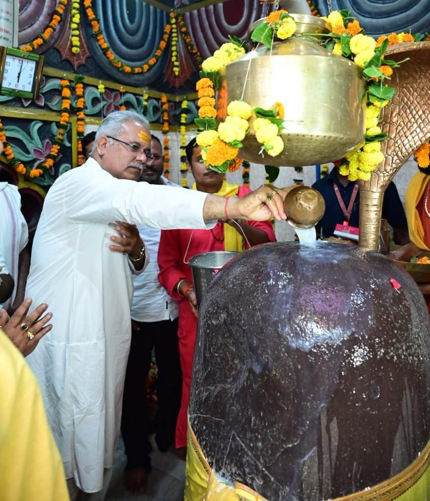 कार्यक्रम में मुख्यमंत्री श्री बघेल ने क्षेत्र के बारह किसानों को खसरा बी-1, बी-2 अपने कर कमलों से वितरण किया। कार्यक्रम को सम्बोधित करते हुए मुख्यमंत्री श्री बघेल ने कहा कि प्रदेशवासियों पर भगवान भोले नाथ की कृपा बनी रहे। उन्होंने सभी को सावन सोमवार की बधाई दी। क्षेत्रवासियों की मांग के अनुरूप सिंचाई सुविधा विस्तारित होने जा रही है। मुख्यमंत्री ने कहा कि सरकार सभी वर्ग के विकास के लिए योजनाएं संचालित कर रही है। सांस्कृतिक गतिविधियों को पुनर्जीवित करने का काम कर रही है। सरकार की योजनाओं से प्रदेश को पहचान मिली है। मुख्यमंत्री श्री बघेल ने लोगों की मांग पर मंदिर परिसर के सौन्दर्यीकरण का भरोसा दिलाया। उन्होंने क्षेत्र के विकास के लिए सेवा का अवसर प्रदान करने लोगों का आह्वान किया। कार्यक्रम को जनपद पंचायत उपाध्यक्ष श्री अशोक साहू ने भी सम्बोधित किया। इस अवसर पर स्थानीय जनप्रतिनिधियों और बड़ी संख्या में लोग उपस्थित थे।