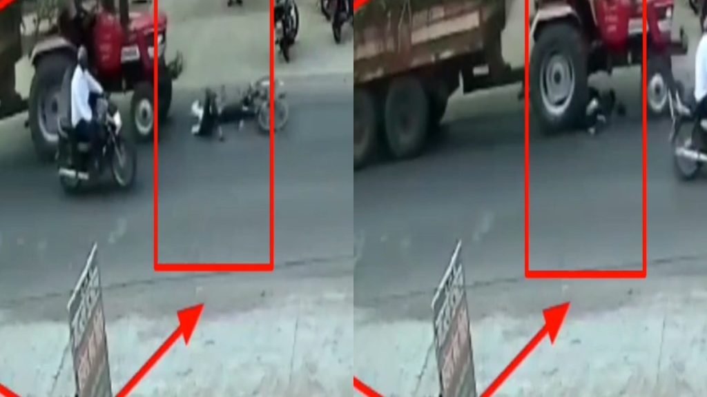 गन्ने से भरे ट्रैक्टर ट्रॉली ने 2 बच्चों को कुचला,CCTV में कैद हुई घटना