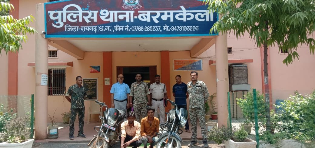 Raigarh News *रायगढ़* । कल दिनांक 29/06/2022 के रात्रि थाना प्रभारी बरमकेला निरीक्षक एल.पी. पटेल को मुखबिर से सूचना मिला कि ग्राम खरवानी पारा में महेश श्रीवास चोरी की मोटरसाइकिल घर में छुपा कर रखा है । सूचना पर थाना प्रभारी द्वारा हमराह स्टाफ के साथ ग्राम खरवानीपारा संदेही के घर रेड किया गया । जहां आरोपी महेश श्रीवास पिता दीनानाथ श्रीवास उम्र 30 वर्ष निवासी वार्ड क्रमांक 11 खरवानीपारा बरमकेला थाना बरमकेला से एक काले रंग का सोल्ड प्लैटिना मोटरसाइकिल कीमती ₹75,000 जप्त किया गया । आरोपी महेश श्रीवास से पूछताछ पर मिली जानकारी पर उसके साथी आरोपी किशन चौहान पिता स्वर्गीय कांता चौहान उम्र 22 वर्ष निवासी खोरीगांव थाना बरमकेला के पास से भी एक काले रंग का सोल्ड प्लैटिना मोटरसाइकिल कीमती ₹75000 जप्त किया गया है । थाना प्रभारी को कुछ दिनों पूर्व ही सूचना मिली थी कि दोनों मोटरसाइकिल की चोरी के लिए संदिग्ध घूमते रहते हैं जिस पर थाना प्रभारी द्वारा मुखबिर और स्टाफ लगा रखे थे । आरोपियों पर थाना बरमकेला में धारा 41(1+4)CrPC/379 IPC की कार्रवाई कर आरोपियों को गिरफ्तार कर उनके गिरफ्तारी की सूचना परिजनों को देकर न्यायिक रिमांड पर भेजा गया है ।