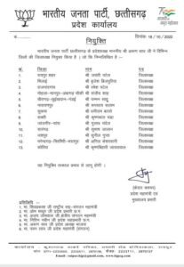 छत्तीसगढ़ बीजेपी में बड़ा फेरबदल, एक साथ बदले गए 13 जिलों के अध्यक्ष