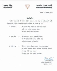 छत्तीसगढ़ में BJP ने 3 पर्यवेक्षकों को किया नियुक्त – RGH NEWS