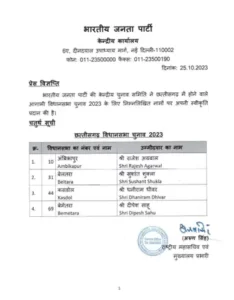 छत्तीसगढ़ BJP ने जारी की प्रत्याशियों की चौथी लिस्ट