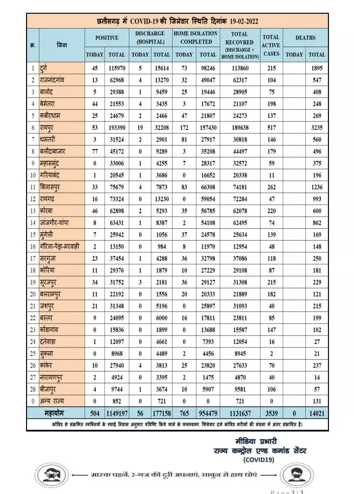छत्तीसगढ़ में आज मिले 504 नए कोरोना मरीज,देखे पूरी लिस्ट