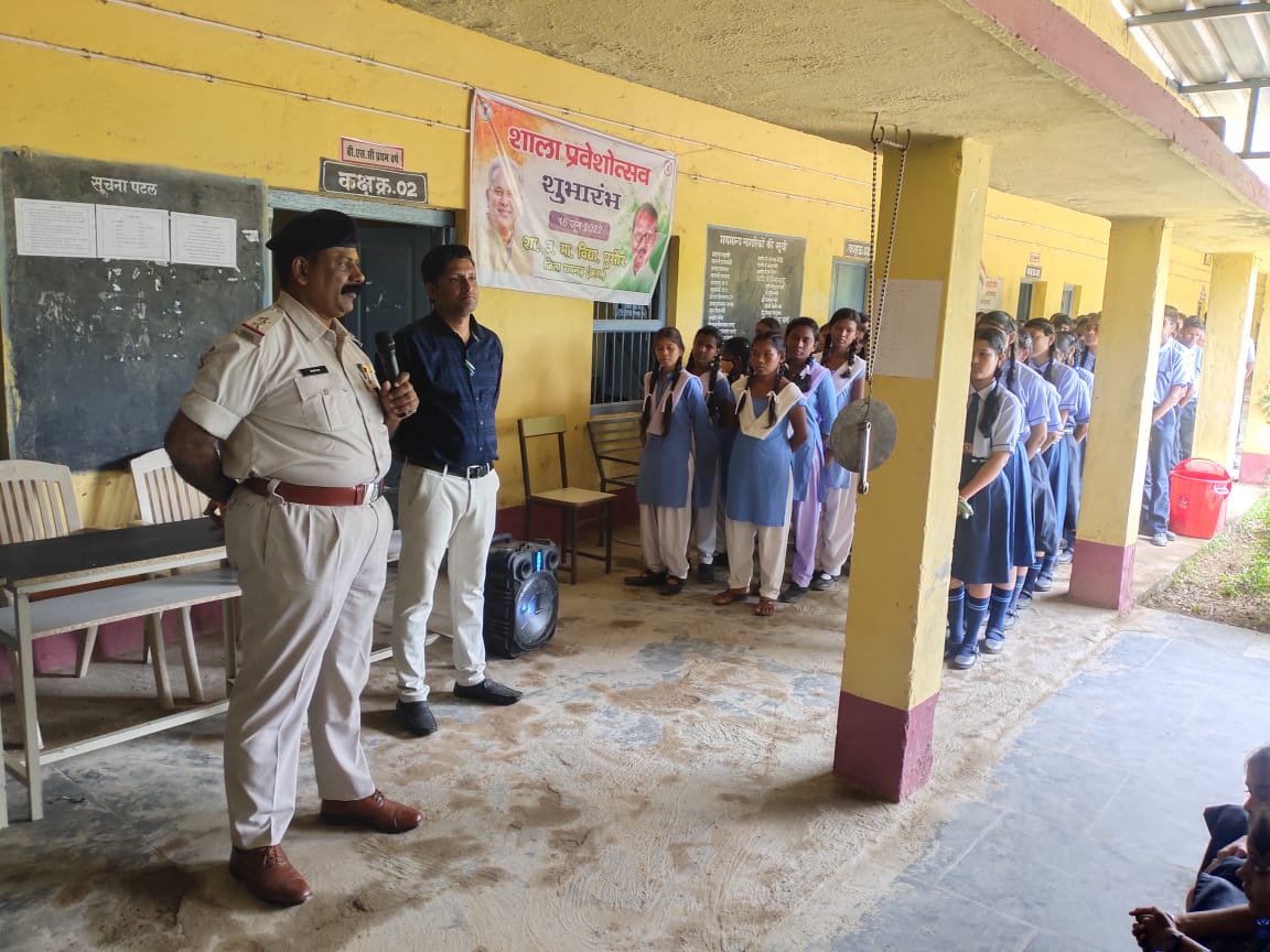 Raigarh News Today *रायगढ़* । पुलिस अधीक्षक श्री अभिषेक मीना के दिशा निर्देशन पर थाना प्रभारी पुसौर उप निरीक्षक गिरधारी साव द्वारा क्षेत्र के अभिनव विद्या मंदिर, स्वामी आत्मानंद हिन्दी एवं अंग्रेजी स्कूल और आदर्श ग्राम भारती विद्या मंदिर जाकर विद्यार्थियों को साइबर अपराध एवं साइबर अपराध से बचने के उपाय, गुड टच-बैड टच, महत्वपूर्ण हेल्प लाइन नम्बर की जानकारी देते हुए यातायात नियम को विस्तार पूर्वक बताकर यातायात नियमों का पालन करने प्रेरित किया गया ।
