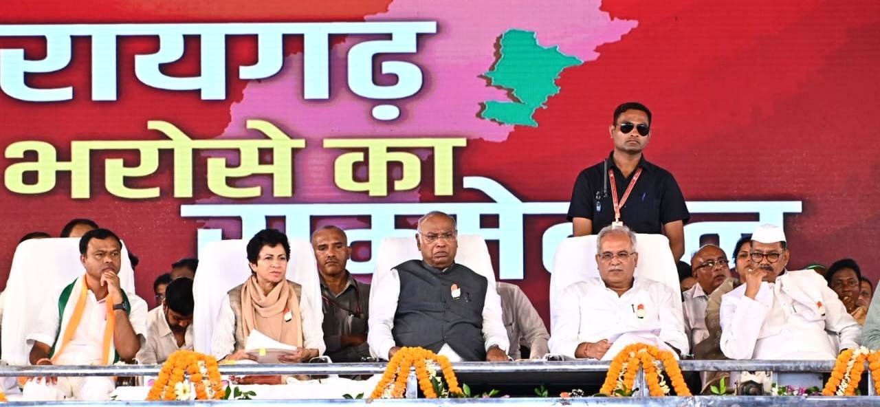 रायगढ़ के कोड़ातराई में 04 अक्टूबर को भरोसे के सम्मेलन कार्यक्रम में नेता प्रतिपक्ष राज्यसभा व सांसद श्री मल्लिकार्जुन खडग़े व मुख्यमंत्री श्री भूपेश बघेल ने 82 चयनित विकासखण्डों में बनने वाले जैतखाम का शिलान्यास किया।