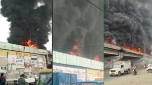 Fire Breaks In National Highway : पंजाब के लुधियाना से एक बड़ी खबर निकलकर सामने आ रही है। यहां भीषण आग का तांडव देखने के लिए मिला हैं। दरअसल, लुधियाना के खन्ना में नेशनल हाइवे में तेल से भरा टैंकर पलट गया और उसमे आग लग गई। इसके बाद नेशनल हाइवे पर आग की लपटे उठना शुरू हो गई। हादसे का वीडियो सोशल मीडिया पर जमकर वायरल हो रहा है।