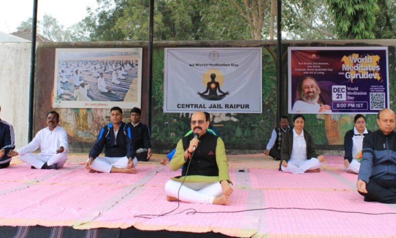 राजधानी रायपुर के केंद्रीय जेल में आज प्रथम अंतरराष्ट्रीय ध्यान दिवस के अवसर पर कैदियों के लिए विशेष ध्यान और योग शिविर आयोजित की गई। इस ध्यान और योग शिविर का संचालन पूर्व सदस्य एवं आर्ट ऑफ लिविंग के वरिष्ठ प्रशिक्षक श्री अजय सिंह द्वारा किया गया। इस शिविर में कैदियों को ध्यान, प्राणायाम और योग के विभिन्न तरीकों का अभ्यास कराया गया।