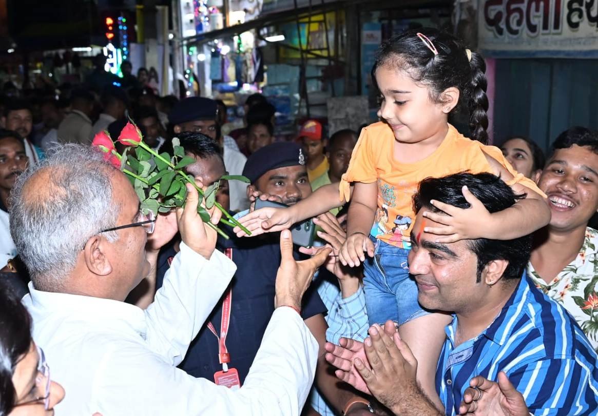 बालोद के रोड-शो में प्यारी बच्ची ने मुख्यमंत्री को स्नेहवश गुलाब का फूल भेंट किया