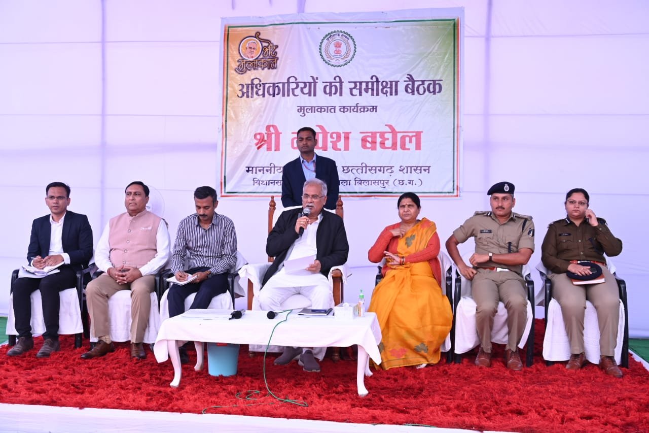 मुख्यमंत्री श्री भूपेश बघेल बिलासपुर जिले के तखतपुर विधानसभा के अंतर्गत ग्राम खपरी में अधिकारियों की समीक्षा बैठक ले रहे हैं।