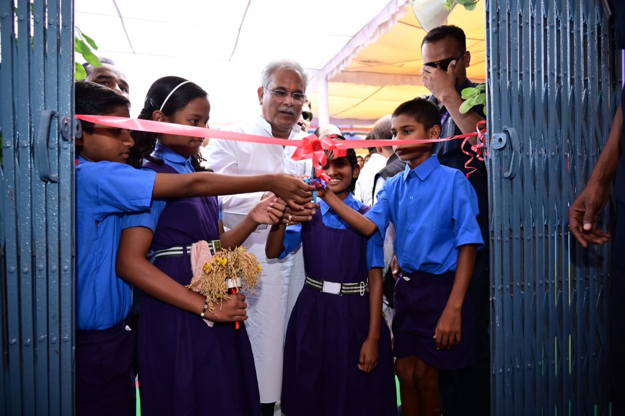 मुख्यमंत्री श्री भूपेश बघेल ने जिला खनिज न्यास निधि के माध्यम 11 लाख रुपए की लागत से जीर्णोद्धार हुए शासकीय प्राथमिक शाला इंदिरा आवास कोनारगढ़ का लोकार्पण किया।