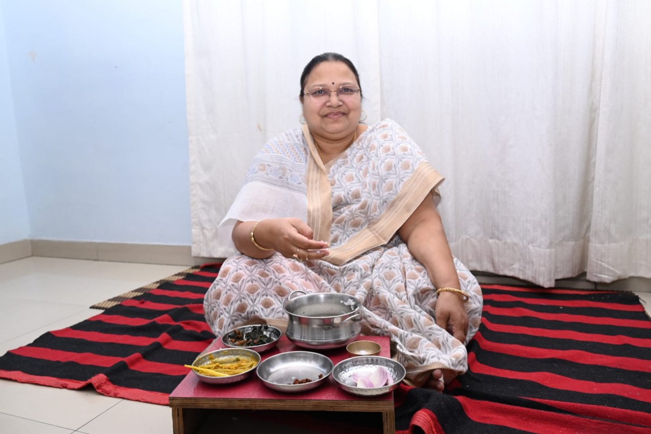 श्रीमती अनिला भेंड़िया ने आज श्रमवीरों के सम्मान में बोरे बासी खाकर अपने दिन की शुरूआत की