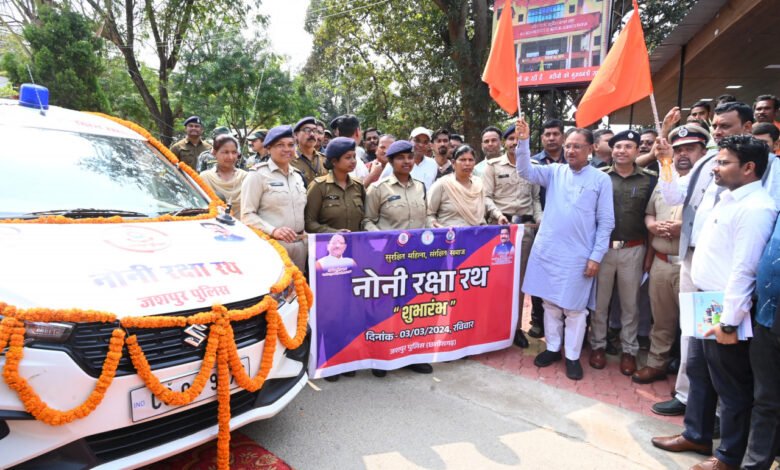 मुख्यमंत्री श्री विष्णुदेव साय ने आज यहां अपने निवास ग्राम बगिया से नोनी रक्षा रथ को झंडी दिखाकर रवाना किया। जशपुर पुलिस प्रशासन द्वारा सुरक्षित महिला सुरक्षित समाज के उद्देश्य से इस रथ का संचालन किया जा रहा है ताकि जिले में महिलाओं एवं बालिकाओं से संबंधित अपराधों पर लगाम लगे और ऐसे मामलों की कमी आए । इसके साथ ही घटित अपराध पर त्वरित कार्रवाई सुनिश्चित हो।