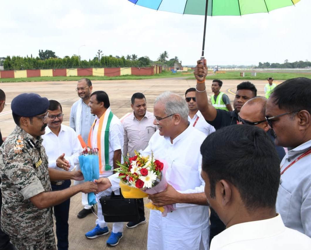 मुख्यमंत्री का जगदलपुर एयरपोर्ट में किया गया आत्मीय स्वागत