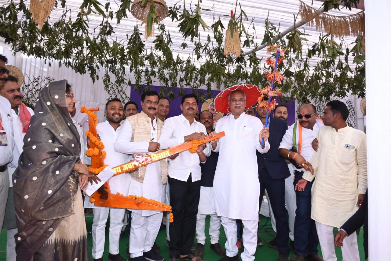 मुख्यमंत्री को भेंट-मुलाकात कार्यक्रम में स्थानीय जनप्रतिनिधियों ने हल,खुमरी और लाठी भेंट की