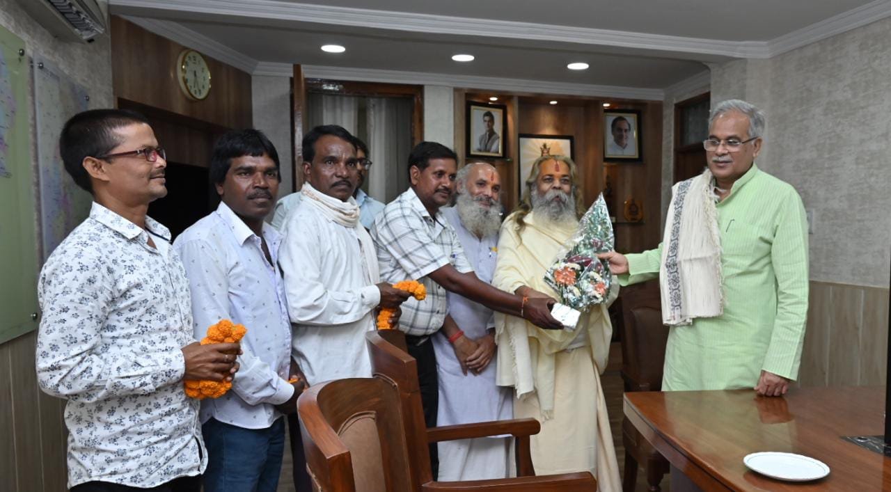 मुख्यमंत्री श्री भूपेश बघेल से उनके निवास कार्यालय में गौ सेवा आयोग के अध्यक्ष महंत श्री राम सुंदर दास जी के नेतृत्व में राजमिस्त्री कल्याण संघ जांजगीर के प्रतिनिधि मंडल ने सौजन्य मुलाकात की। प्रतिनिधिमंडल ने मुख्यमंत्री को राजमिस्त्री कल्याण संघ द्वारा आयोजित किए जा रहे विश्वकर्मा पूजन कार्यक्रम में शामिल होने का न्योता दिया। उन्होंने मुख्यमंत्री को बताया कि आगामी 17 सितंबर को यह कार्यक्रम आयोजित किया जाएगा। मुख्यमंत्री ने राजमिस्त्री कल्याण संघ जांजगीर के प्रतिनिधिमंडल को आमंत्रण के लिए धन्यवाद दिया। इस अवसर पर श्री निर्मल दास वैष्णव,श्री योगेंद्र कुमार कहरा, श्री काशीराम, श्री राम सुमिरन बरेठ, श्री सनत डहरिया, श्री देव बरेठ सहित राजमिस्त्री कल्याण संघ के अन्य सदस्यगण उपस्थित रहे।