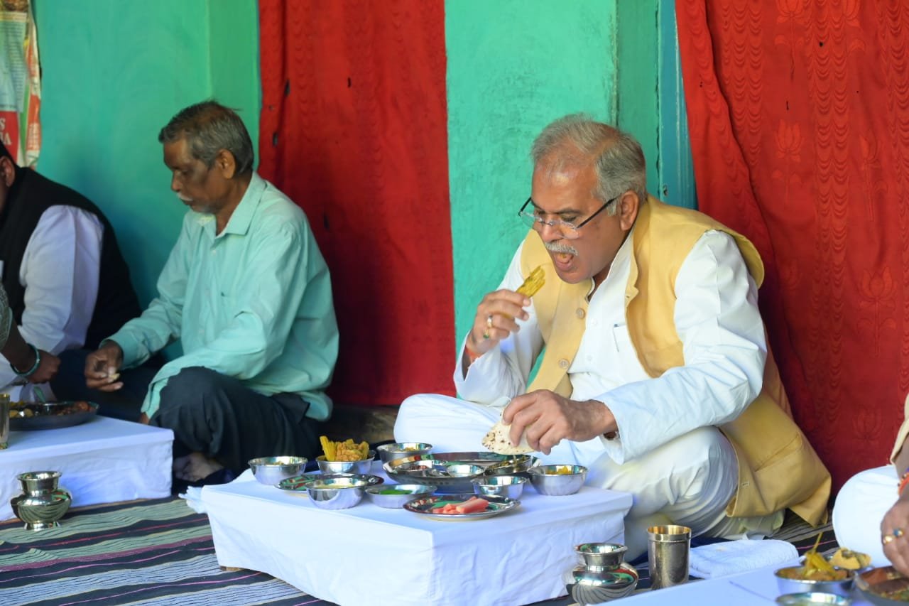 मुख्यमंत्री श्री भूपेश बघेल ने महासमुन्द जिले के खल्लारी विधानसभा के ग्राम एम.के.बाहरा निवासी आदिवासी किसान श्री यादराम ध्रुव के घर पर भोजन किया। मुख्यमंत्री श्री बघेल के साथ गृहमंत्री श्री ताम्रध्वज साहू, संसदीय सचिव श्री द्वारकाधीश यादव ने भी भोजन का स्वाद लिया।