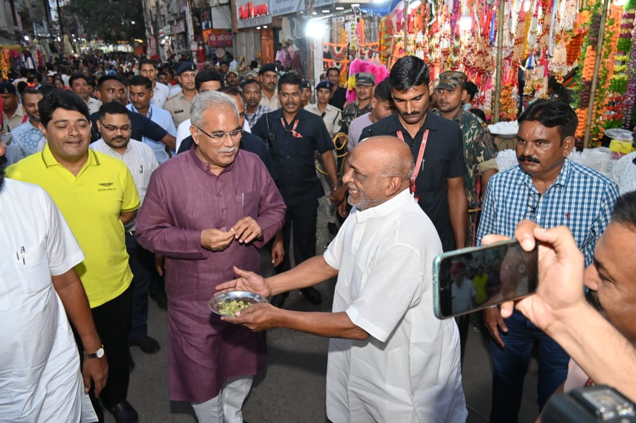 मुख्यमंत्री श्री भूपेश बघेल आज धनतेरस की संध्या पर दीवाली की खरीदी के लिए रायपुर के गोल बाजार पहुंचे। मुख्यमंत्री ने दीवाली मनाने के लिए गोल बाजार में स्थानीय कुम्हारों से मिट्टी के दीये, मटकी, गणेश, लक्ष्मी और सरस्वती की मिट्टी की बनी मूर्ति, ग्वालिन की मूर्ति, मिठाईयां और लाखे नगर स्थित हिन्द स्पोर्टिंग मैदान में लगे फटाका दुकाने से फटाखे खरीदे। इस दौरान संसदीय सचिव श्री विकास उपाध्याय, महापौर श्री एजाज ढेबर, विधायक श्री कुलदीप जुनेजा उनके साथ थे।