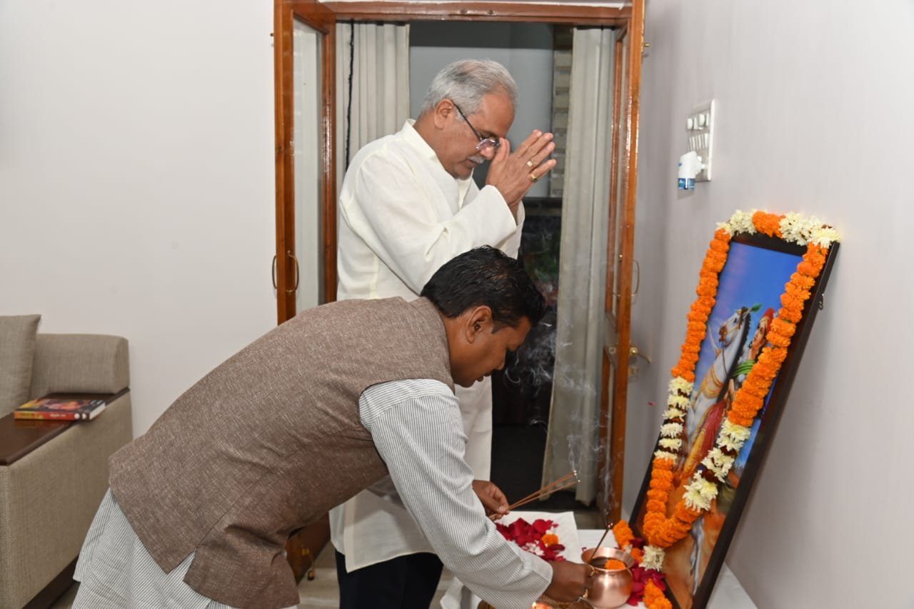 मुख्यमंत्री श्री भूपेश बघेल ने आज यहां अपने निवास कार्यालय में भारत की पहली महिला प्रधानमंत्री भारतरत्न श्रीमती इंदिरा गांधी और प्रथम भारतीय स्वतंत्रता संग्राम की वीरांगना रानी लक्ष्मी बाई को उनकी जयंती पर उनके तैल चित्र के समक्ष दीप प्रज्ज्वलित कर एवं पुष्प अर्पित कर विनम्र श्रद्धांजलि दी।