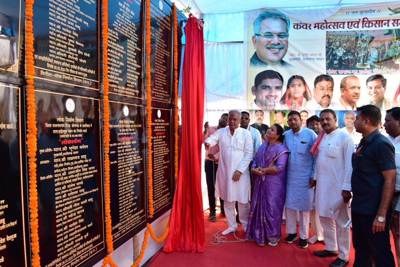 मुख्यमंत्री श्री भूपेश बघेल ने छुरिया विकासखंड में हाईस्कूल मैदान नगर पंचायत छुरिया में कंवर महोत्सव 2023 एवं जिला सहकारी केन्द्रीय बैंक द्वारा आयोजित किसान महासम्मेलन में 105 करोड़ 71 हजार रूपए की लागत के 19 कार्यों का भूमिपूजन एवं लोकार्पण किया। जिसमें 8 करोड़ 66 लाख 39 हजार रूपए की लागत के 6 कार्यों का लोकार्पण तथा 96 करोड़ 34 लाख 32 हजार रूपए की लागत के 13 कार्यों का भूमिपूजन शामिल हंै। मुख्यमंत्री ने इस दौरान विभिन्न विभागों द्वारा संचालित योजना अंतर्गत 165 हितग्राहियों को 2 करोड़ रूपए 56 लाख 40 हजार रूपए की सामग्री, वन अधिकारी पट्टा, सामाजिक एवं अहाता निर्माण हेतु स्वीकृति आदेश तथा प्रशस्ति पत्र का वितरण किया।
