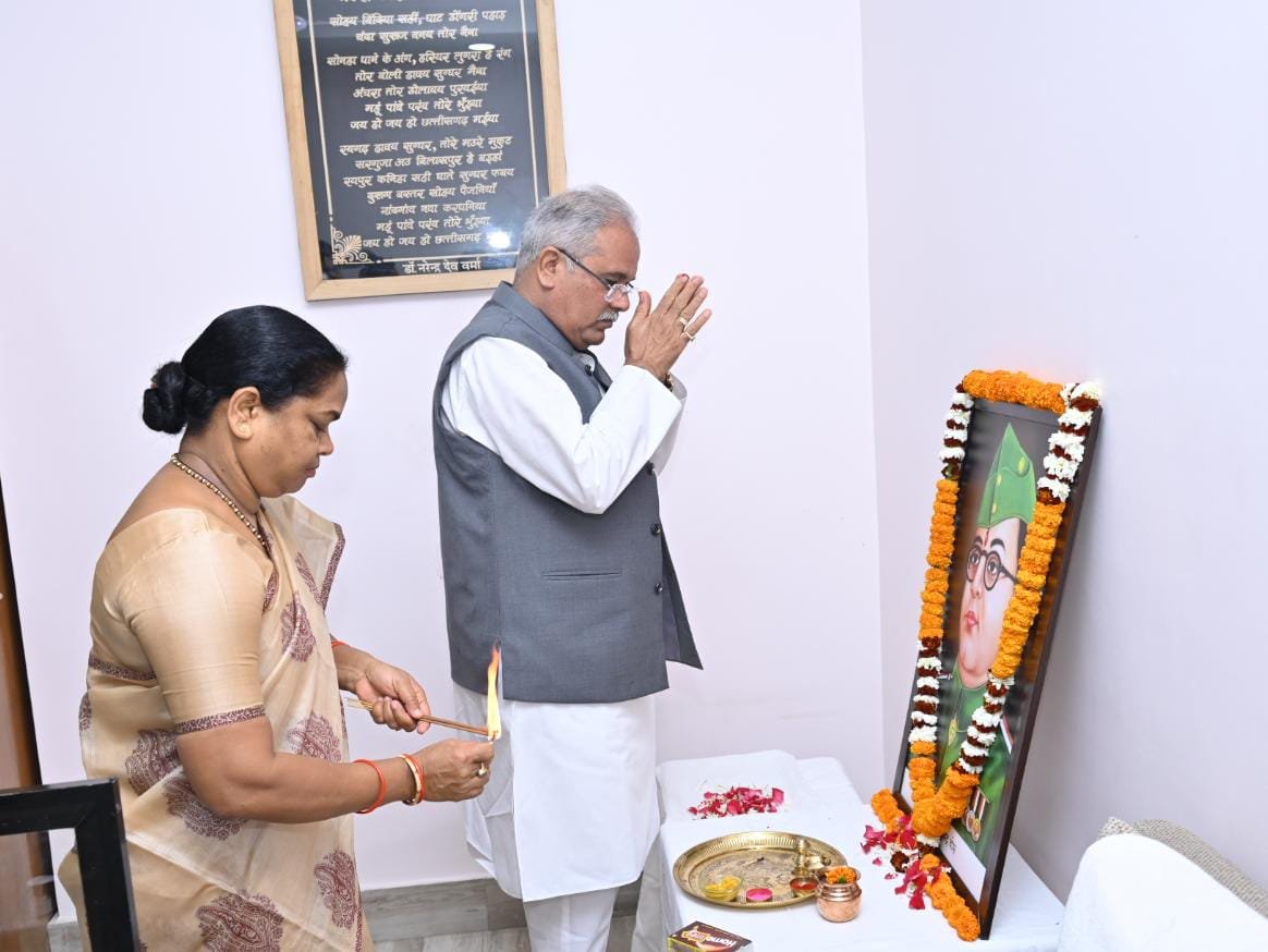 मुख्यमंत्री श्री बघेल ने नेताजी सुभाष चन्द्र बोस की जयंती पर उनके चित्र पर पुष्प अर्पित कर दी श्रद्धांजलि