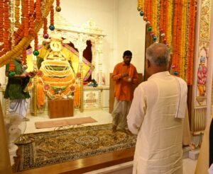 मुख्यमंत्री ने मंदिर की परिक्रमा कर निर्माण के सम्बंध में जानकारी ली, इस दौरान समिति के सदस्यों द्वारा मुख्यमंत्री को स्मृति चिन्ह भेंट किया।