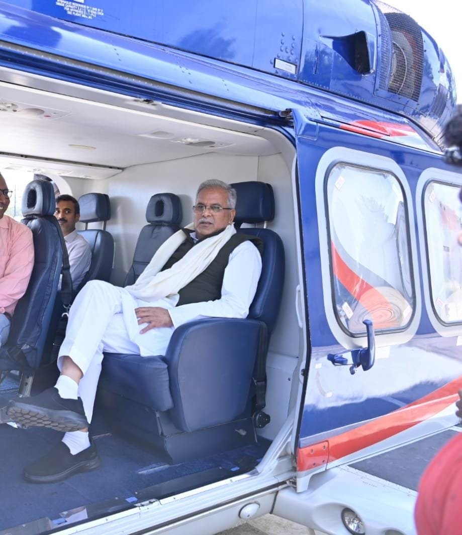 मुख्यमंत्री श्री भूपेश बघेल रायपुर पुलिस लाईन हेलीपेड से बलौदाबाजार-भाटापारा जिले के ग्राम ओड़ान के लिए रवाना