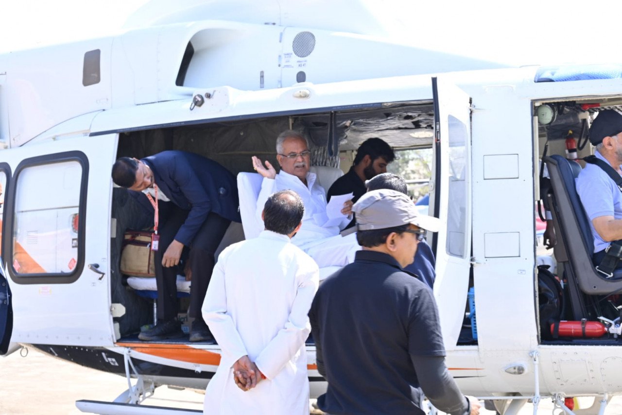 मुख्यमंत्री श्री भूपेश बघेल रायपुर पुलिस लाईन हेलीपेड से रायपुर जिले के ग्राम डंगनिया (चम्पारण) के लिए रवाना