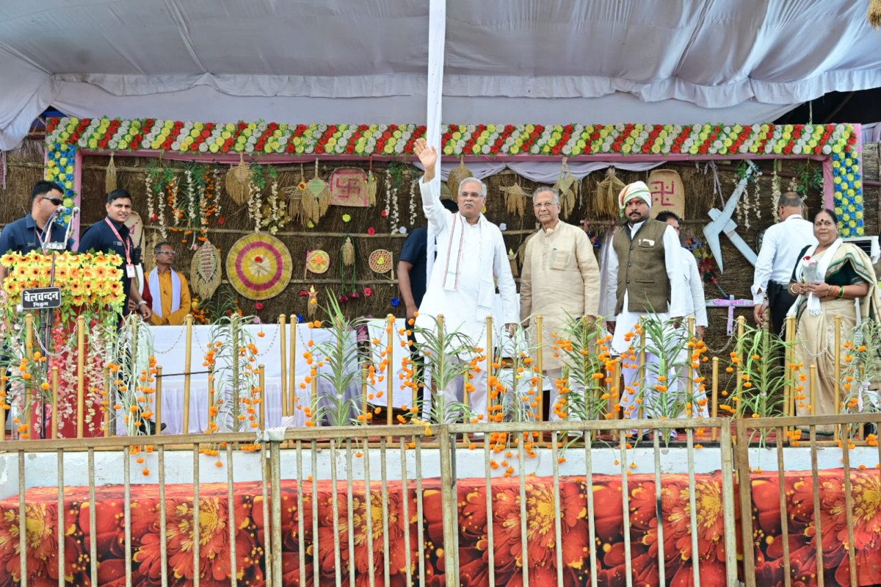 मुख्यमंत्री श्री भूपेश बघेल दुर्ग ग्रामीण विधानसभा के ग्राम निकुम में आयोजित कार्यक्रम में पहुंचे