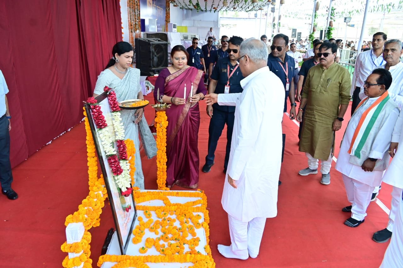 मुख्यमंत्री श्री बघेल ने छत्तीसगढ़ महतारी के छायाचित्र के समक्ष माल्यार्पण एवं दीप प्रज्ज्वलित कर भेंट-मुलाकात की शुरुआत की।