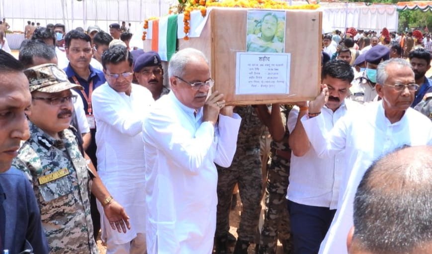 मुख्यमंत्री श्री भूपेश बघेल ने शहीद जवानों की अर्थी को कंधा दिया