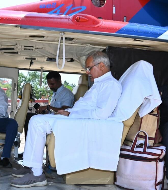मुख्यमंत्री श्री भूपेश बघेल पुलिस ग्राउंड हेलीपैड रायपुर से हंचलपुर, कुरुद के लिए रवाना