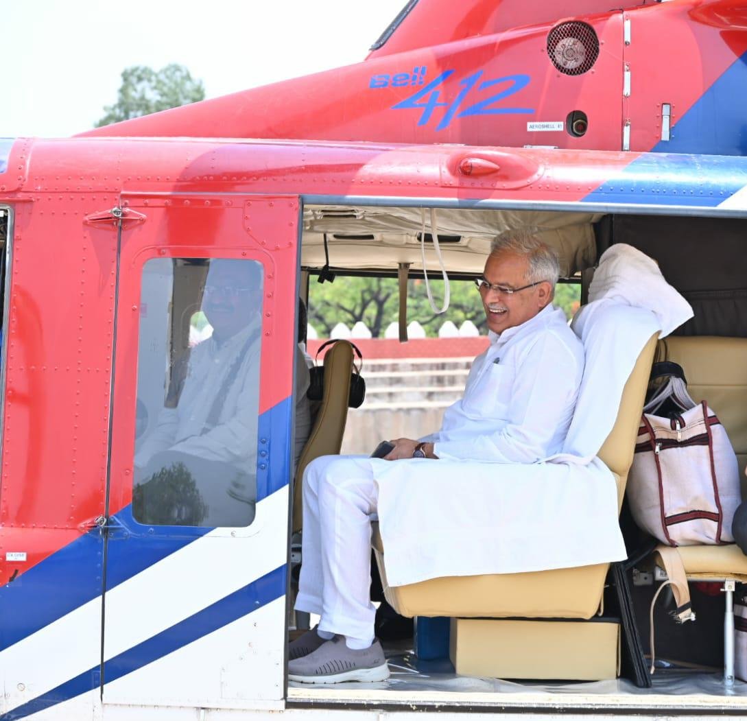 मुख्यमंत्री श्री भूपेश बघेल रायपुर पुलिस लाईन हेलिपेड से बिलासपुर जिले के बेलतरा विधानसभा क्षेत्र के ग्राम अकलतरी के लिए रवाना