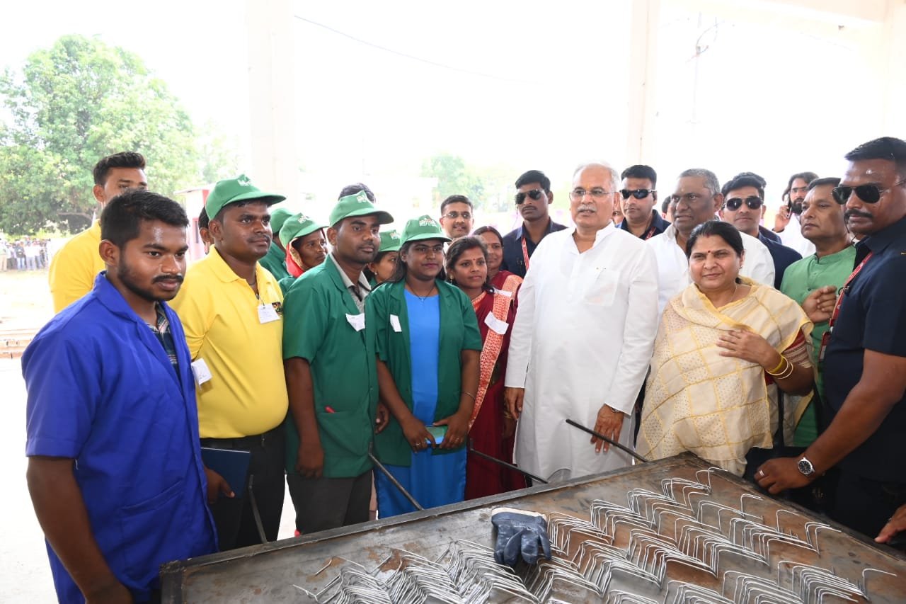 मुख्यमंत्री श्री भूपेश बघेल ने चैन लिंक फेंसिंग इकाई तथा आरसीसी पोल निर्माण इकाई का किया अवलोकन
