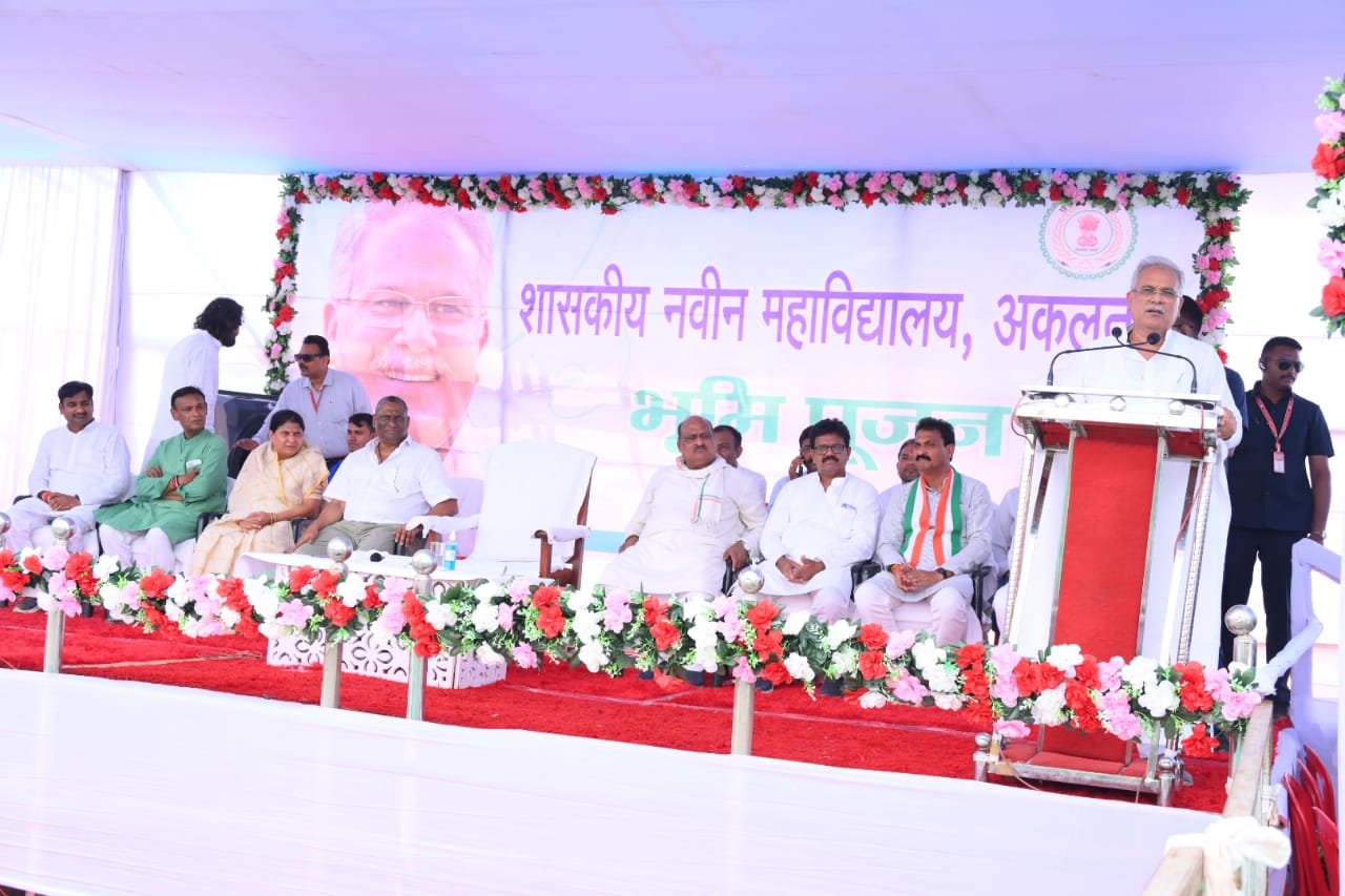 मुख्यमंत्री श्री भूपेश बघेल ने बेलतरा में किया शासकीय नवीन महाविद्यालय भवन निर्माण हेतु पूजा-अर्चना कर भूमिपूजन