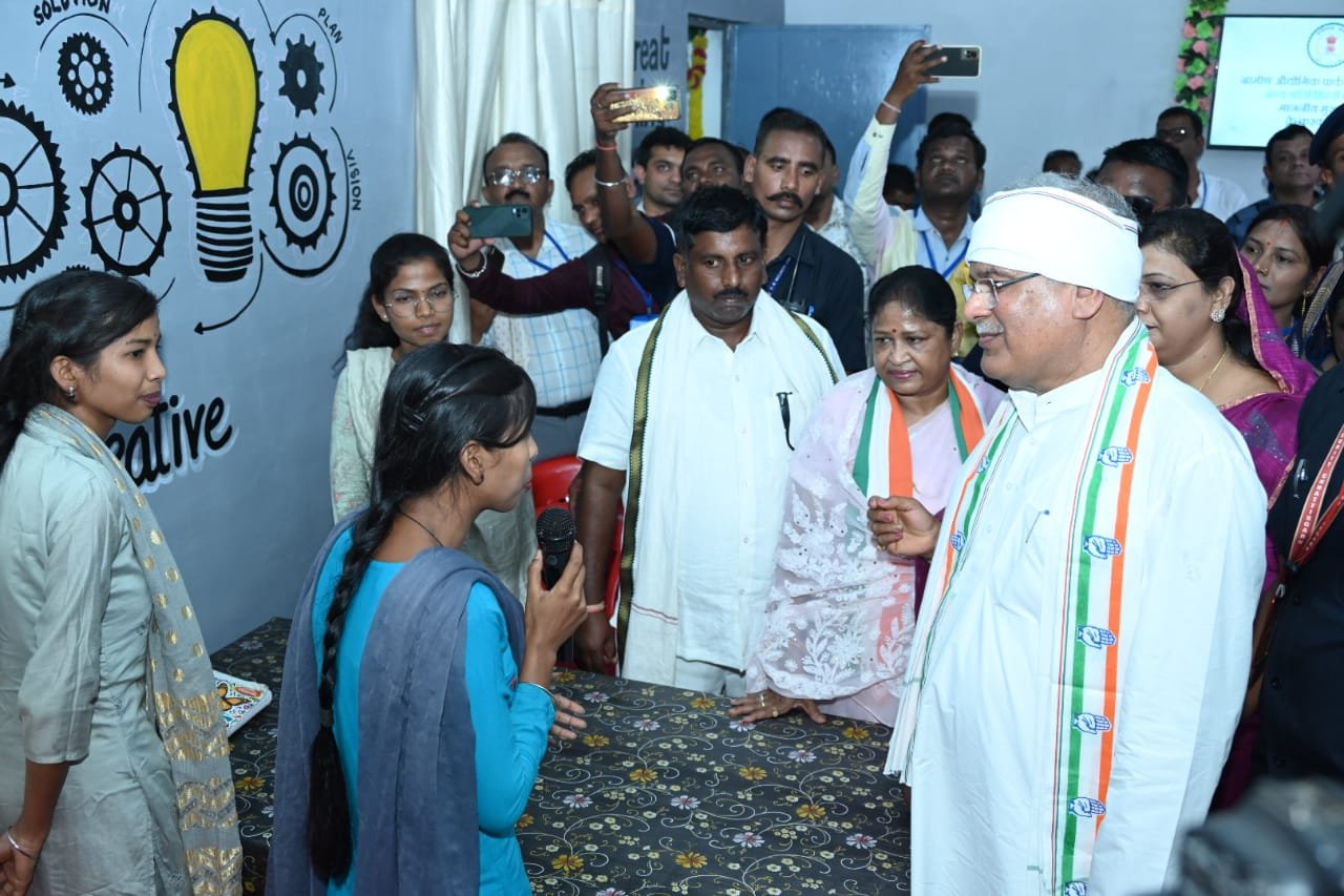 मुख्यमंत्री श्री भूपेश बघेल ने एमएससी की छात्रा नमिषा देवांगन से वाईफाई सुविधा के बारे में पूछा-