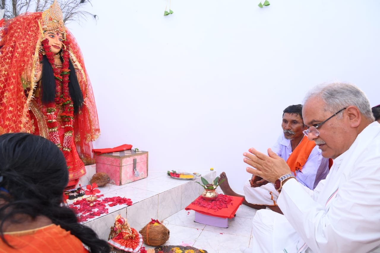मुख्यमंत्री श्री भूपेश बघेल ने ग्राम भटगांव स्थित चन्द्र मौली माता मंदिर में पूजा अर्चना कर प्रदेशवासियों के खुशहाली और समृद्धि के लिए की कामना