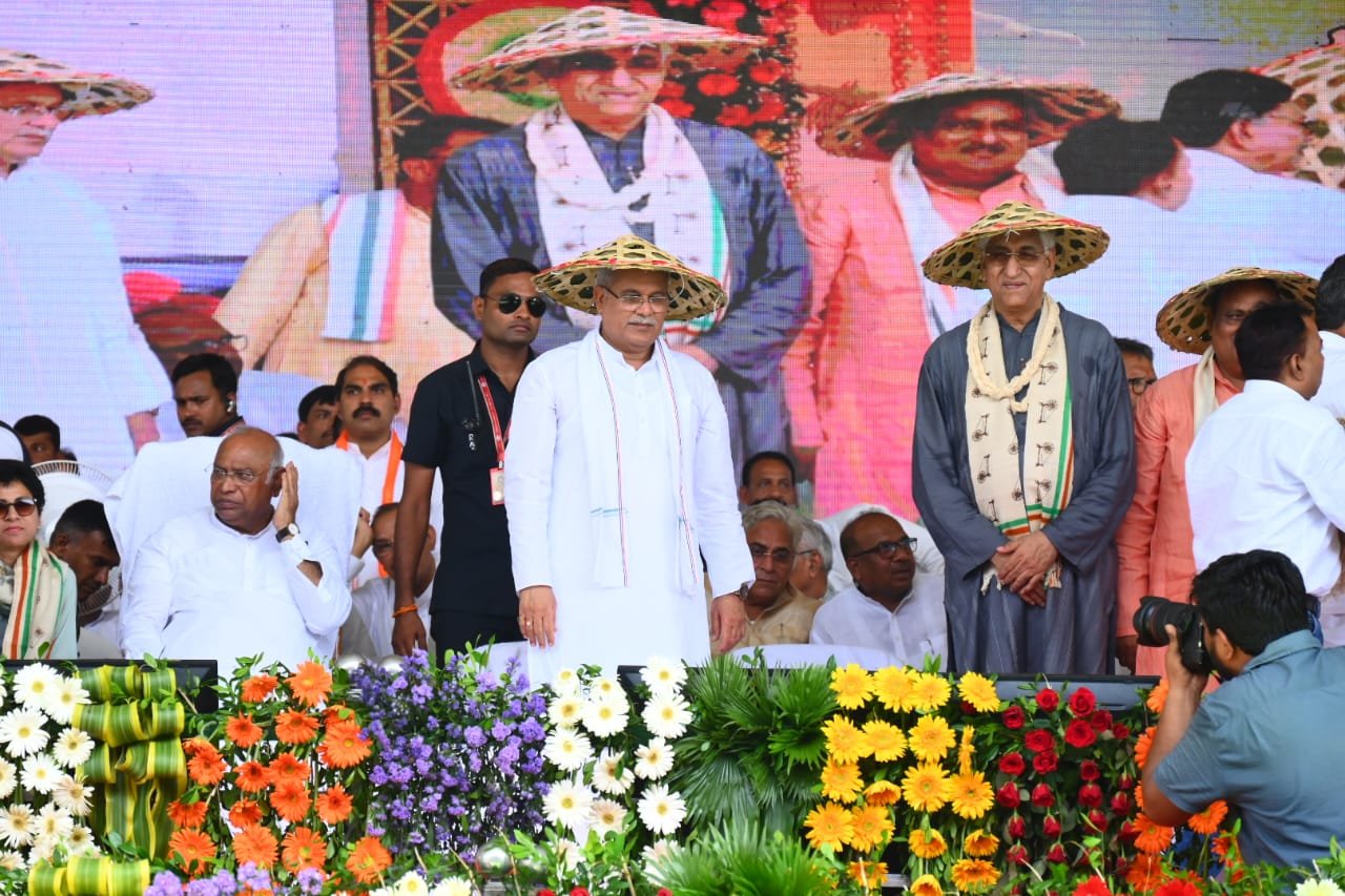 मुख्यमंत्री श्री भूपेश बघेल सभी अतिथियों के साथ भरोसे का सम्मेलन के मुख्य मंच पर पहुंचे – RGH NEWS