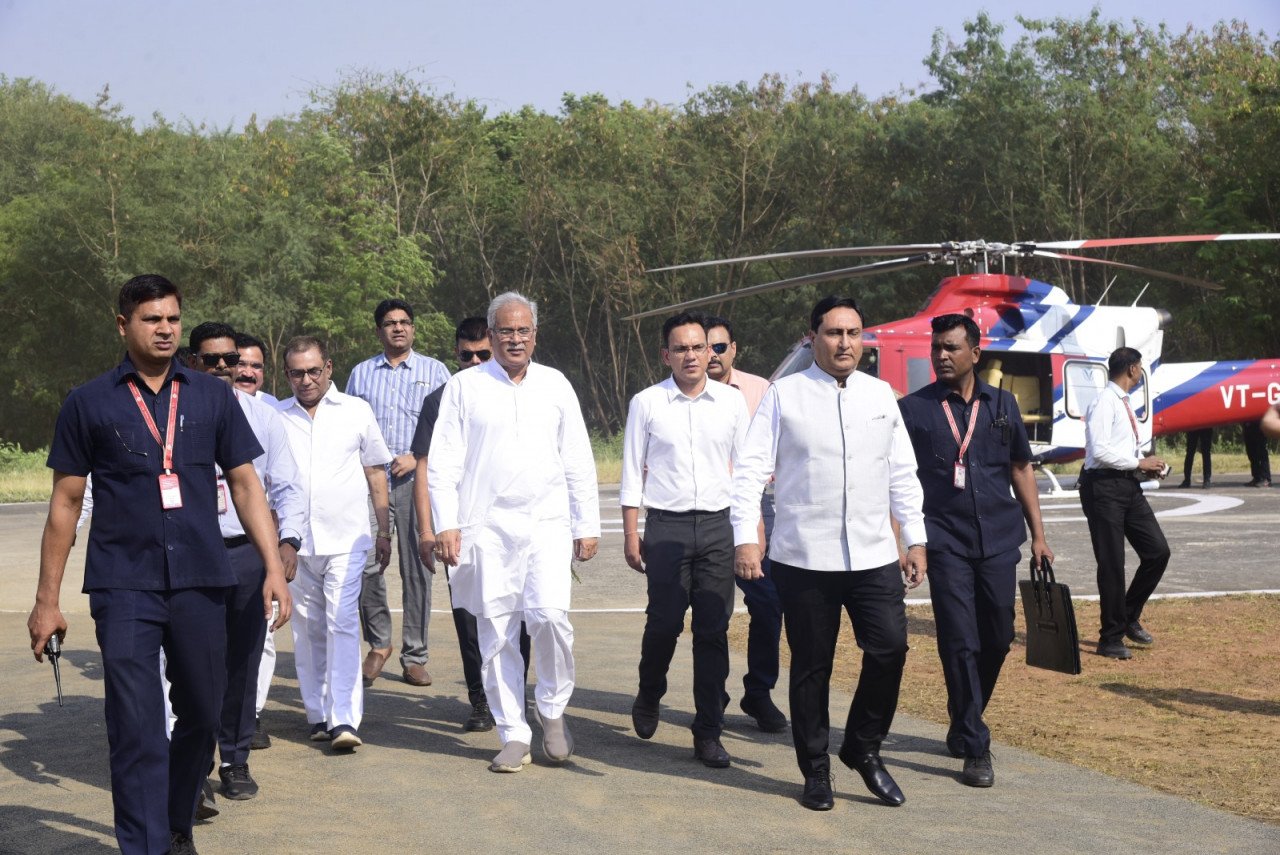 ’मुख्यमंत्री श्री भूपेश बघेल का हेलीपेड पर जोरदार स्वागत’