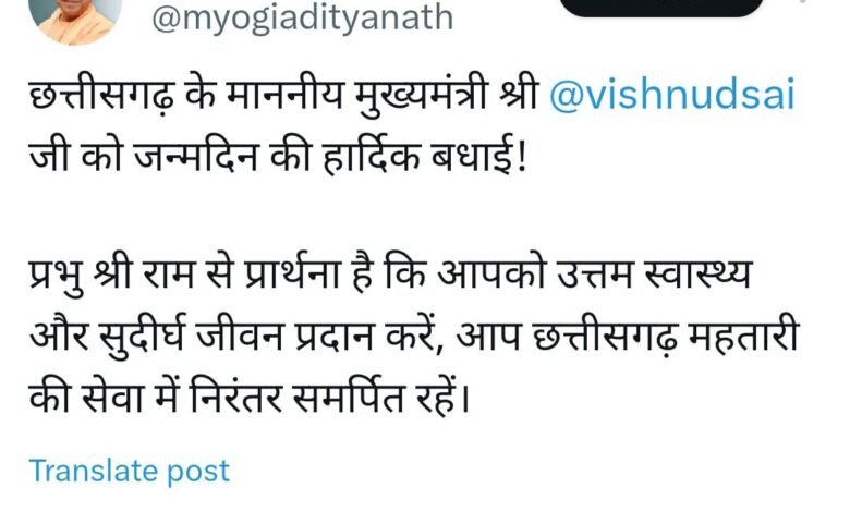 मुख्यमंत्री श्री साय को उत्तरप्रदेश के मुख्यमंत्री श्री योगी आदित्यनाथ ने एक्स पर जन्मदिन की दी बधाई