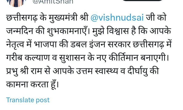 मुख्यमंत्री श्री साय को केंद्रीय गृह मंत्री श्री अमित शाह ने एक्स पर जन्मदिन की दी बधाई
