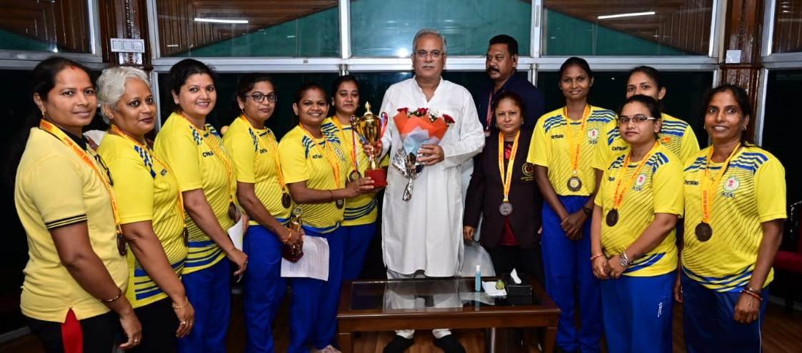 टीम की कप्तान डॉ. अंजुम रहमान और मैनेजर श्रीमती अंजली बहार सहित अन्य खिलाड़ियों ने मुख्यमंत्री श्री भूपेश बघेल को टीम की महिला खिलाड़ियों के प्रदर्शन की जानकारी दी। मुख्यमंत्री ने उनकी उपलब्धि पर शुभकामनाएं देते हुए निरंतर अभ्यास के लिए प्रेरित किया। टीम के अन्य खिलाड़ियों कुमारी चेतना ध्रुव, भावना गुप्ता, मोनिका बैरागड़़े, हर्षा साहू, श्वेता शिंदे, सविता चंद्राकर, रीठा साहू, संजू साहू, चंद्रावती, यामिनीश उपस्थित थीं।