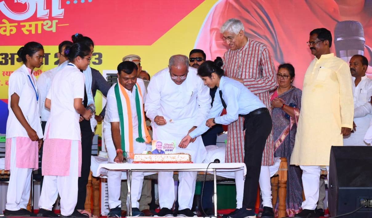 रागी से बना केक लेकर आये – युवाओं ने भेंट मुलाकात के दौरान एक दिन पूर्व ही मुख्यमंत्री श्री भूपेश बघेल का जन्म दिन मनाया। उन्होंने बताया कि मुख्यमंत्री छत्तीसगढ़ में मिलेट मिशन को बढ़ावा देने का खूब काम कर रहे हैं। हमने सोचा कि अगले दिन मुख्यमंत्री का जन्मदिन है तो आज ही मिलेट का केक उनसे कटवाएंगे। युवाओं तथा जनप्रतिनिधियों ने मुख्यमंत्री को मिलेट से बना हुआ यह केक काटने का आग्रह किया। यह केक नर्सिंग कॉलेज की छात्राओं ने तैयार किया था।
