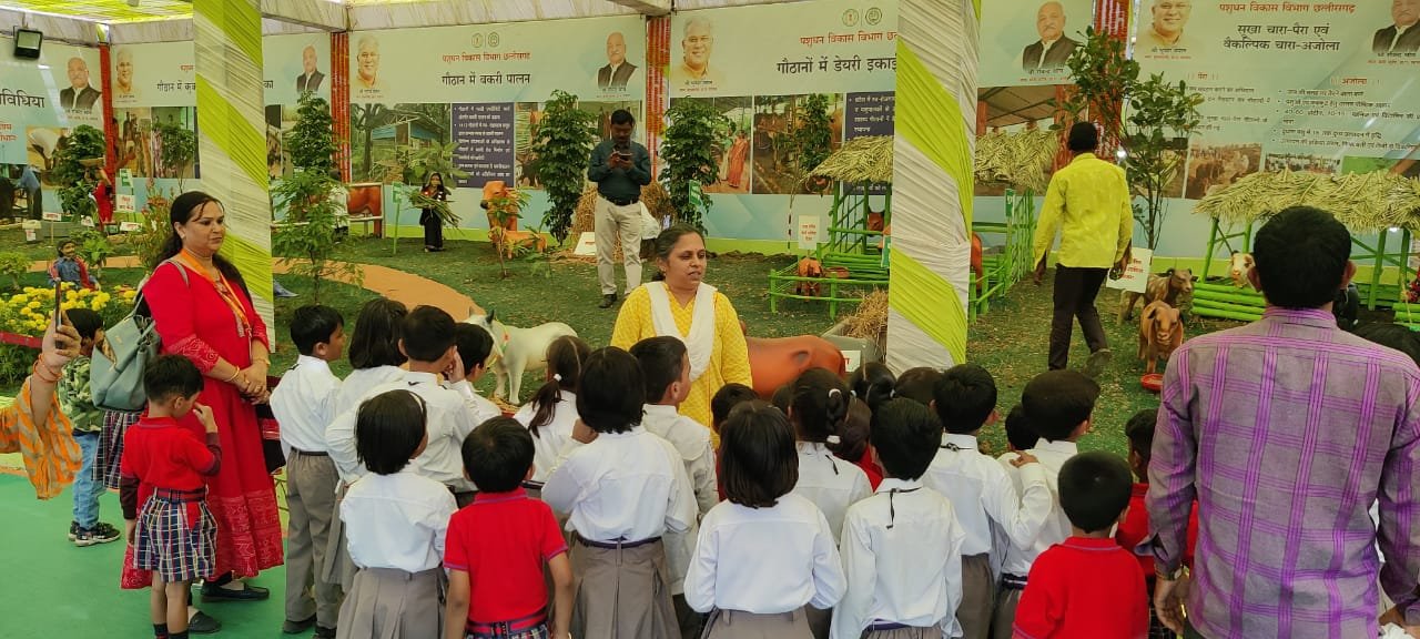 राज्योत्सव में पशुधन विकास विभाग के स्टाल पर नर्सरी के नन्हें बच्चों के गूंजे सवाल