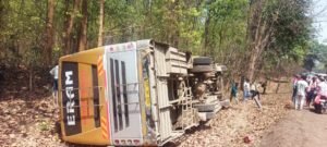 रायगढ़ जिले के इस जगह पर यात्री बस अनियंत्रित होकर पलटी मौके पर पहुंचे पूंजीपथरा T I