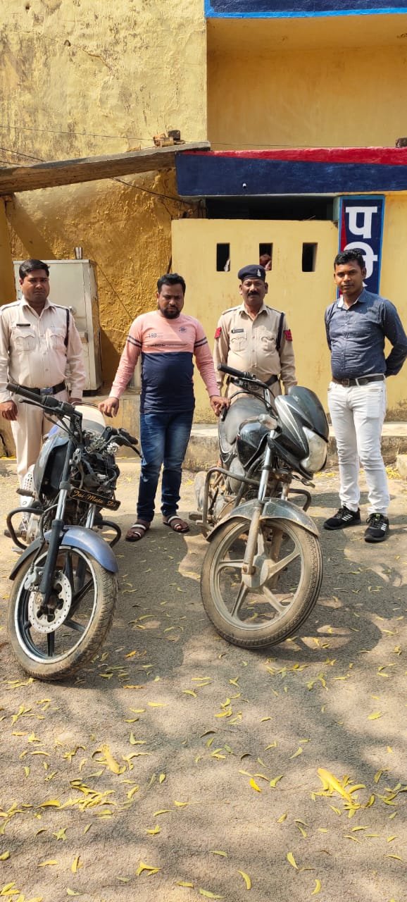 रायगढ़ की खबरे: चोरी की मोटरसाइकिल होने के संदेह पर उमेश जोल्हे को हिरासत में लेकर थाना लाया गया जिससे अन्य मोटर सायकल के संबंध में कड़ी पूछताछ किए जाने पर 2 साल पहले भजन मेला के पास से *हीरो पैशन प्रो मोटरसाइकिल* चोरी कर छिपाकर रखना बताया । आरोपी *उमेश कुमार जोल्हे पिता बाबूलाल जोल्हे उम्र 31 वर्ष निवासी उलखर थाना सारंगढ़* से चोरी की दो बाइक बिना नम्बर पल्सर एवं हीरो पैशन प्रो मोटरसाइकिल CG 13 R 4435 *दोनों वाहन जुमला कीमती 90,000 रूपये* का बरामद कर आरोपी पर धारा 41(1+4)CrPC/379 IPC की कार्यवाही कर रिमांड पर भेजा गया है । थाना प्रभारी कोसीर उप निरीक्षक जय मंगल पटेल के नेतृत्व में शातिर वाहन चोर से वाहन बरामदगी कार्रवाई में प्रधान.आरक्षक ए.डी. महंत, आरक्षक जीत राम लहरे, सुरेश बर्मन, मुनीराम अनंत, प्रकाश धिरही, दिलेश्वर नेताम की भूमिका सराहनीय रही है ।