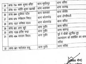 रायगढ़ में पुलिस विभाग में बड़ा फेरबदल:30 कॉन्स्टेबल और 2 हेड कॉन्स्टेबल का हुआ ट्रांसफर