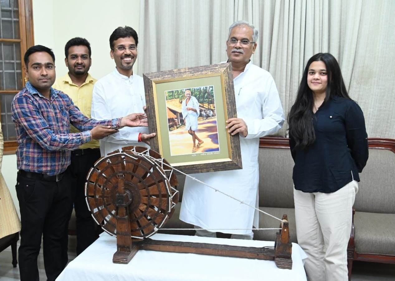 मुख्यमंत्री को रायपुर के व्यवसायी श्री कोठारीे ने आत्मीय भाव से भेंट किया 65 साल पुराना गांधी चरखा