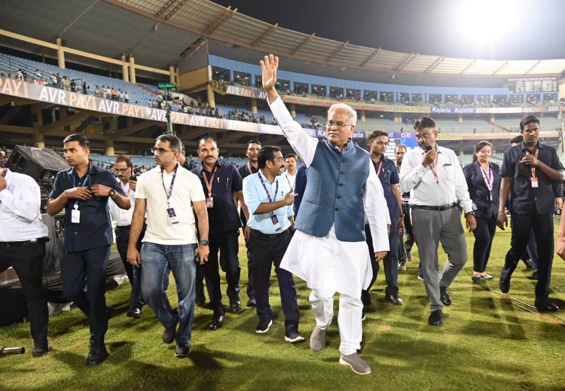 रोड सेफ्टी वर्ल्ड सीरीज-2022 के तहत क्रिकेट का फाइनल मैच इंडिया लीजेंड्स और श्रीलंका लीजेंड्स के बीच शुरू हो चुका है। नवा रायपुर के शहीद वीर नारायण सिंह अंतर्राष्ट्रीय क्रिकेट स्टेडियम में आज रात 7.30 बजे से शुरू हुए फाइनल मैच को देखने मुख्यमंत्री श्री भूपेश बघेल स्टेडियम पहुंचे। मुख्यमंत्री के स्टेडियम पहुंचने पर दर्शकों ने खड़े होकर गर्मजोशी के साथ उनका स्वागत किया। इस मौके पर मुख्यमंत्री ने स्टेडियम का चक्कर लगाकर दर्शकों का अभिवादन स्वीकार किया। मुख्यमंत्री मैदान के बीच पहुंचकर टॉस में हुए शामिल।